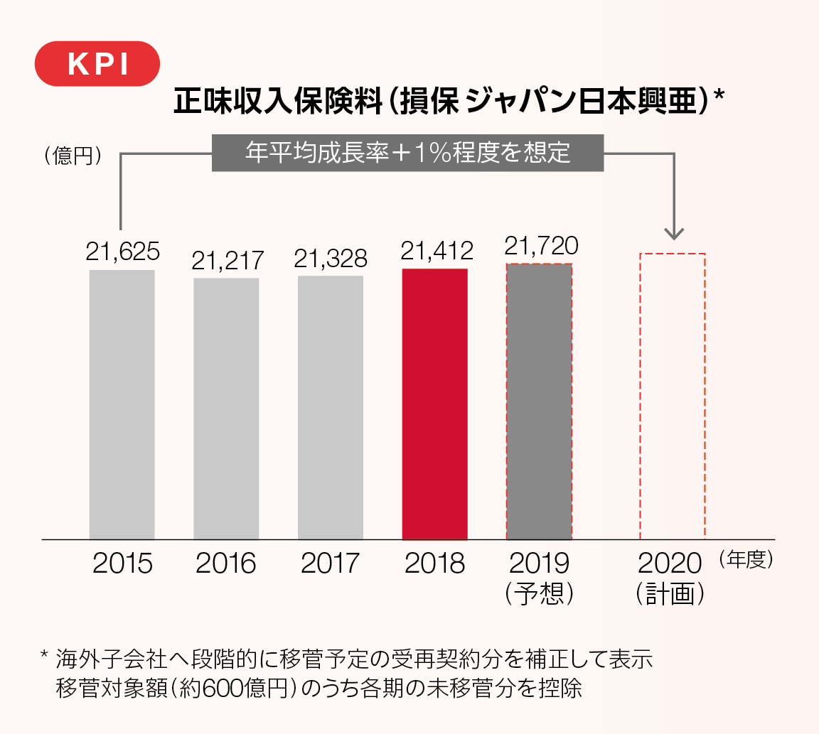 国内損保事業はグループ全体の修正利益の約5割(2019年度予想)を占める最大の事業部門として、今後もグループの成長に寄与していくことを目指します。